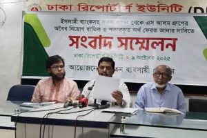 নিজস্ব প্রতিবেদক: ইসলামী ব্যাংকের অর্থ লুট ও অনিয়মে অভিযুক্ত এস আলম গ্রুপের জব্দ করা শেয়ার ও সম্পদ নিলামে বিক্রি করে ব্যাংকটির দেনা পরিশোধের দাবি জানিয়েছে সচেতন ব্যবসায়ী ফোরাম। স্বাভাবিক কার্যক্রম ও স্বচ্ছতা ফিরিয়ে আনতে পূর্ববর্তী পরিচালনা পর্ষদের কাছে ব্যাংকের মালিকানা হস্তান্তরের আহ্বানও জানিয়েছে সংগঠনটি। বৃহস্পতিবার (৯ অক্টোবর) ঢাকা রিপোর্টার্স...